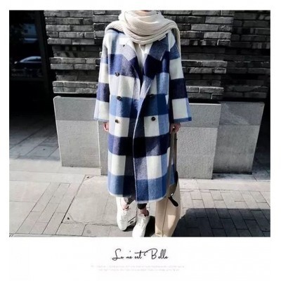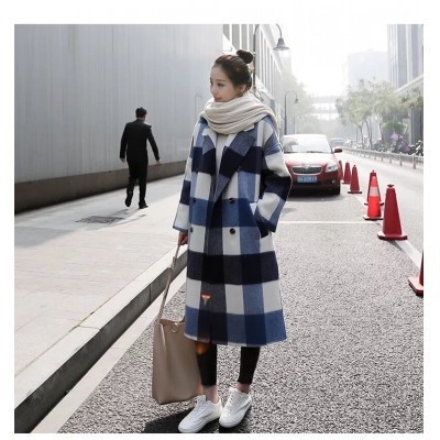 الرئيسية > Casual Loose Winter Midi Womens Plaid Wool Coat Elegant Slim Streetwear Warm Coat Ladies Fashion