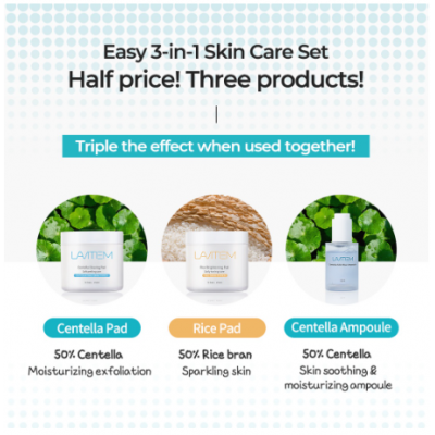 الرئيسية > [LAVITEM] Centella Asiatica Cleansing Pad 1 + Rice Brightening Pad 1 + CENTELLA SILK BLUE AMPOULE 1
