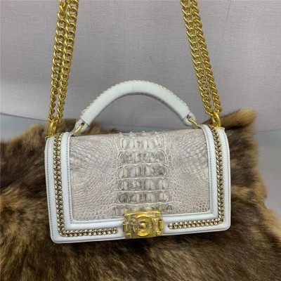 الرئيسية > bolsas > Аутентичная экзотическая кожа крокодила женская белая сумка с клапаном из натуральной кожи аллигатор