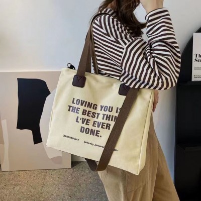 Women 2022 New Canvas Handbag Fashion Wild Beach Bag Large Capacity Shopping Bag Personalized Tote B