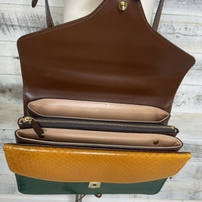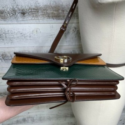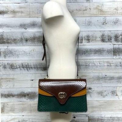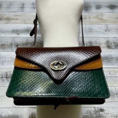 Gucci коричневый питон сумка кожа интерлок GG зеленый желтый аккордеон кошелек 550131
