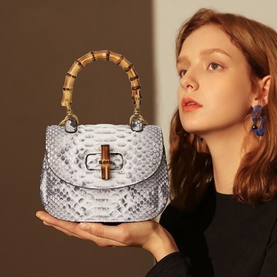 McParko Top Handle Bags for Women Genuine Snakeskin Genuine Leather Handbag Ladies White Bags Luxu
