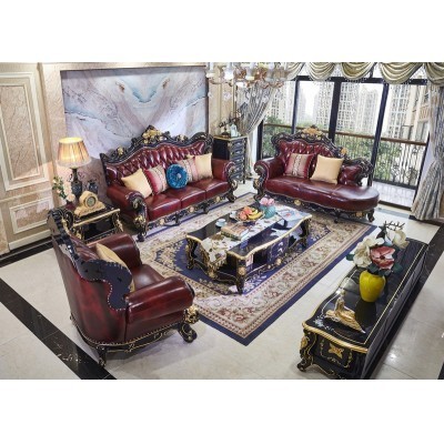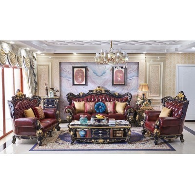 الرئيسية > أثاث > European-style Leather Sofa Combination 123 Luxury Living Room Furniture All Solid Wood Oak Blue Cha