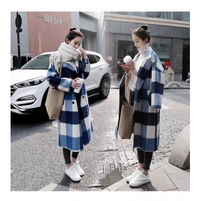 الرئيسية > Casual Loose Winter Midi Womens Plaid Wool Coat Elegant Slim Streetwear Warm Coat Ladies Fashion