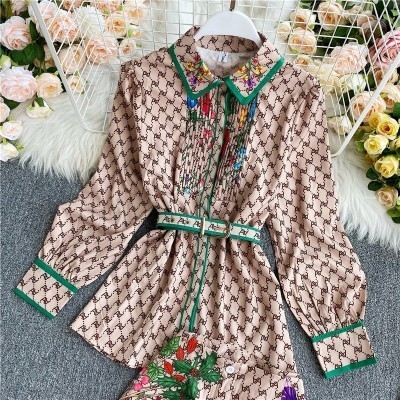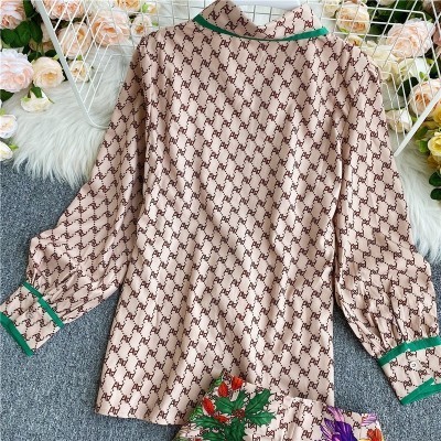 الرئيسية > يرتدي > Fashion Vintage Two Piece Set 2022 Summer Turn Down Collar Long Sleeves Blouse Lady Tops+ Shorts Wom