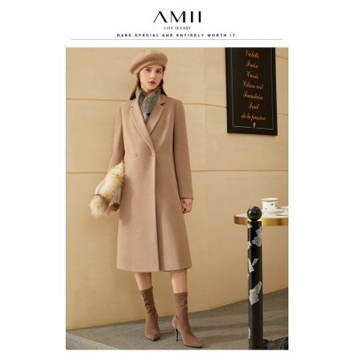 الرئيسية > يرتدي > Extrañar > Amii Minimalism Winter Woolen Coat For Women Elegant Lapel Long Jacket Lady Wool Overcoat Solid Thic