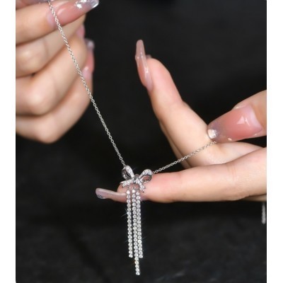 الرئيسية > يرتدي > otro > ATTAGEMS Moissanite Diamond Natural 18K Gold Pendant Bow Necklace for Women with Silver Chains