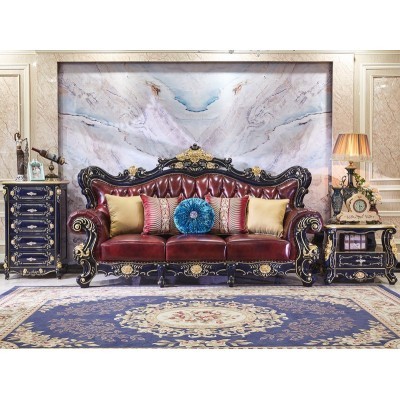 الرئيسية > أثاث > European-style Leather Sofa Combination 123 Luxury Living Room Furniture All Solid Wood Oak Blue Cha